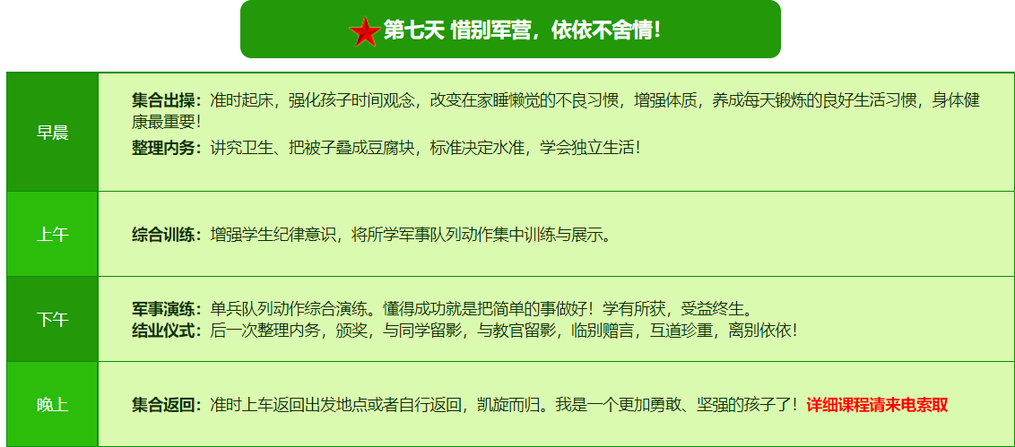 2026年昆明亮剑军事夏令营7日领袖系课程表
