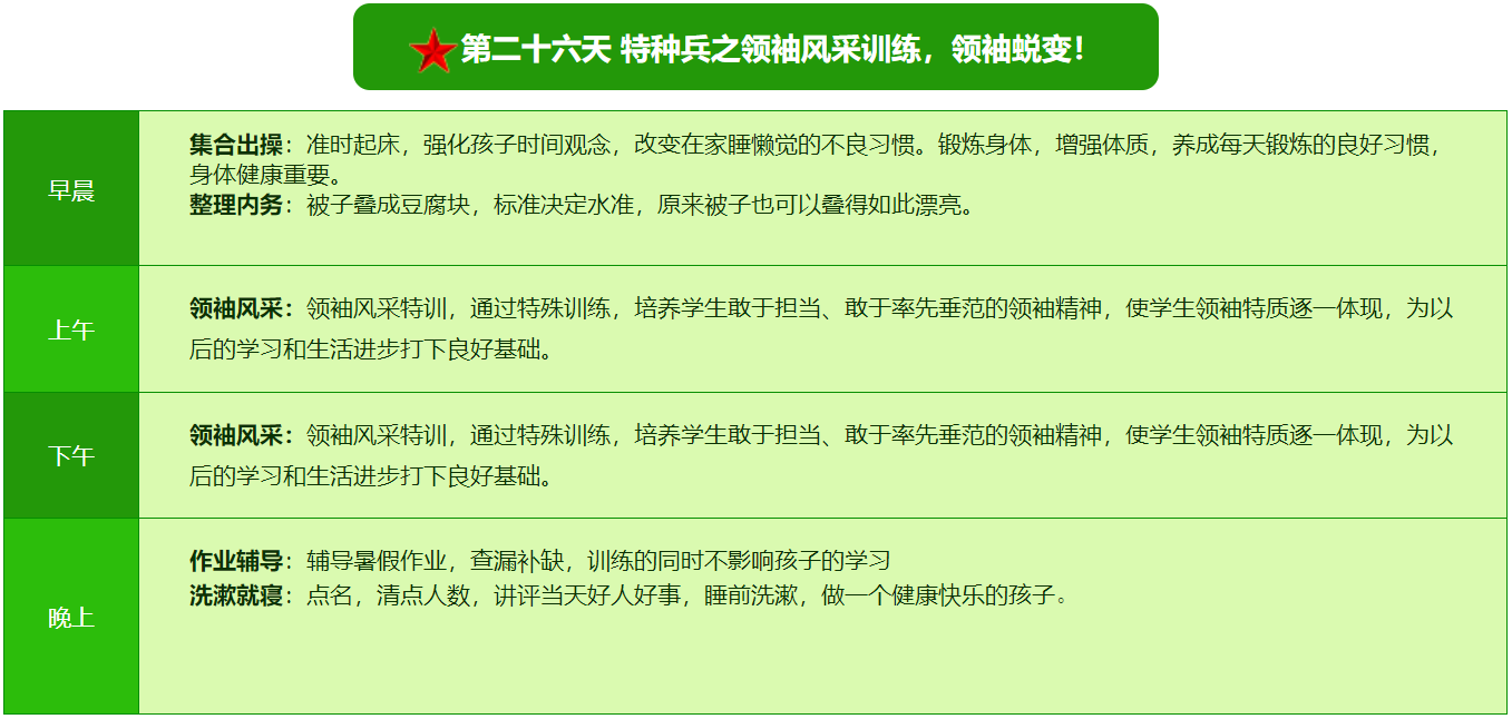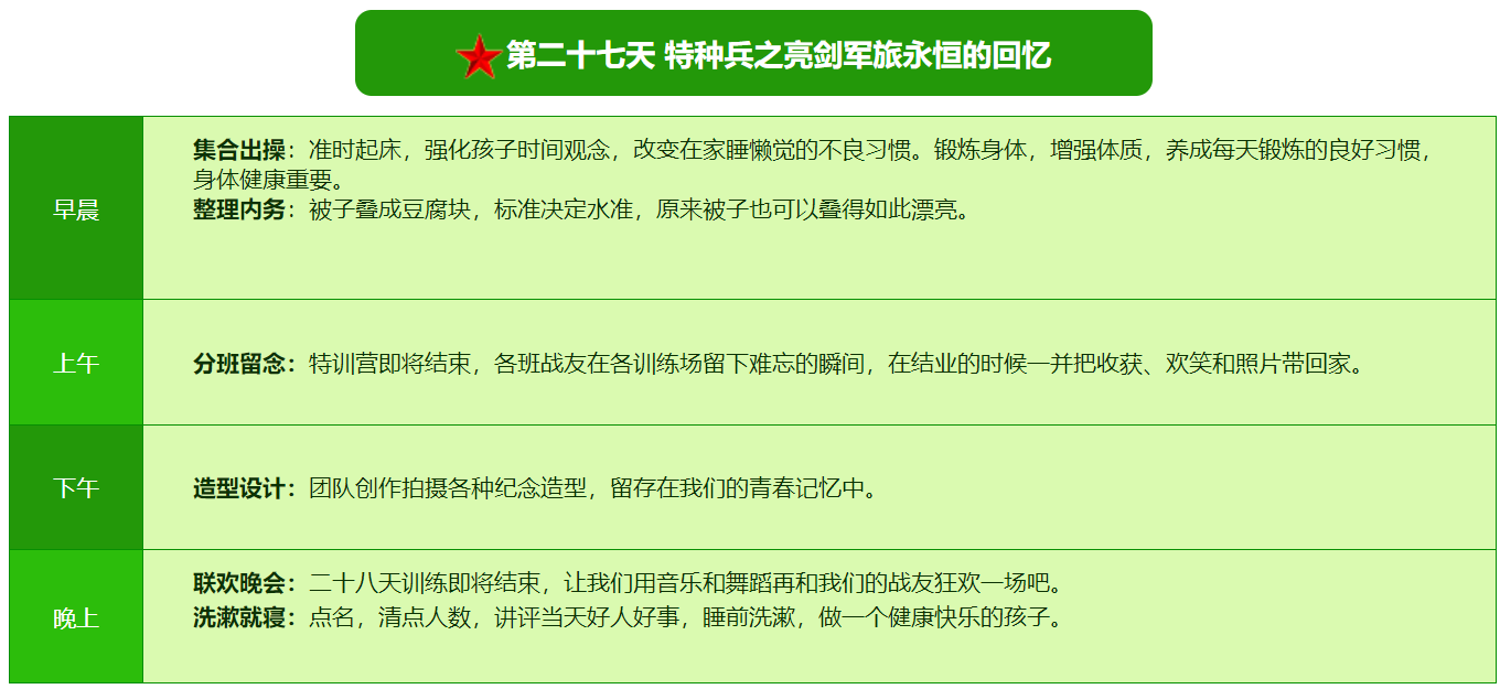 2026昆明亮剑军事夏令营28日领袖营课程表