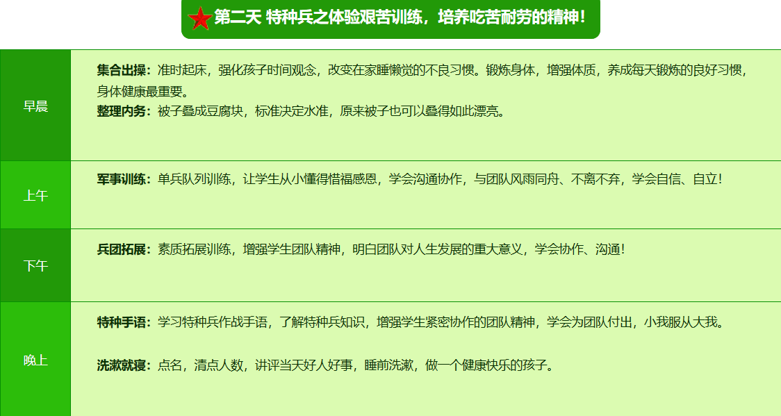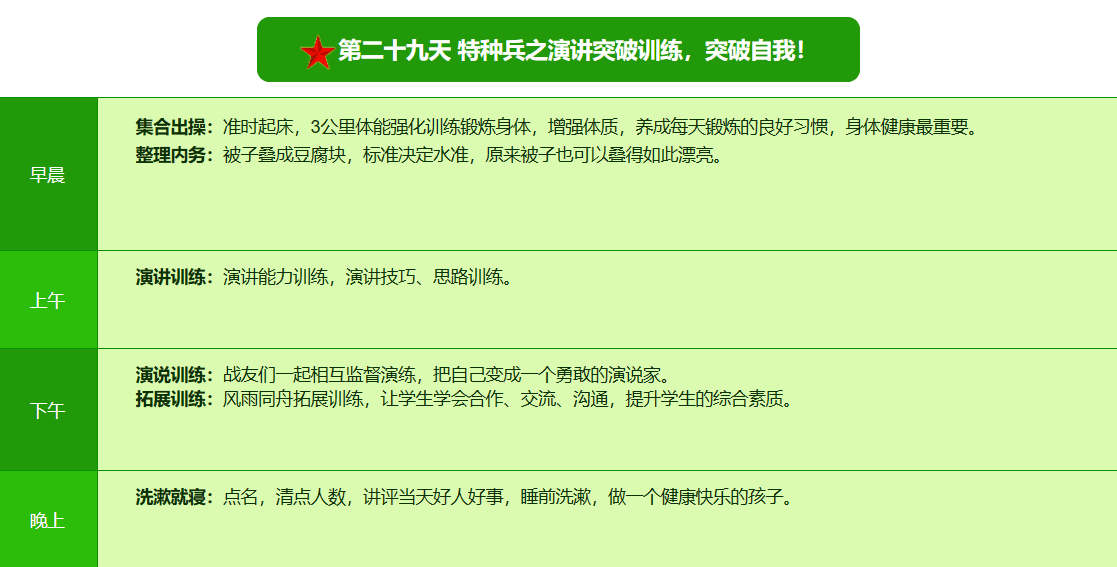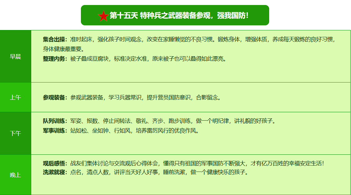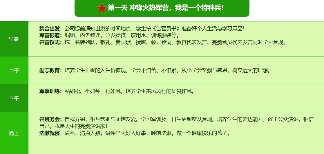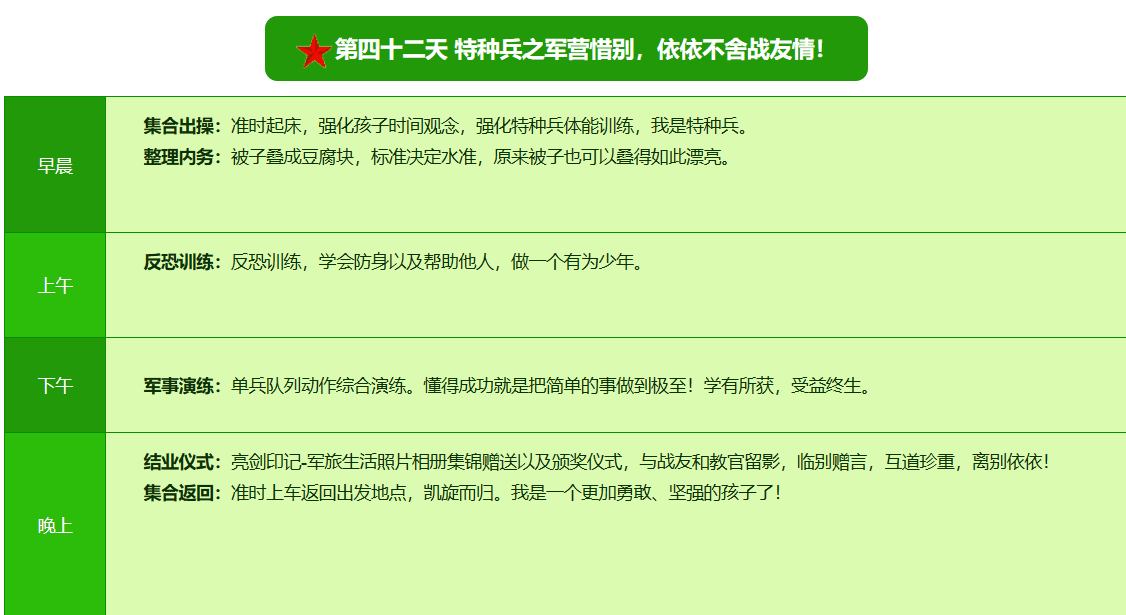 2026昆明·亮剑军事夏令营42日领袖营课程表