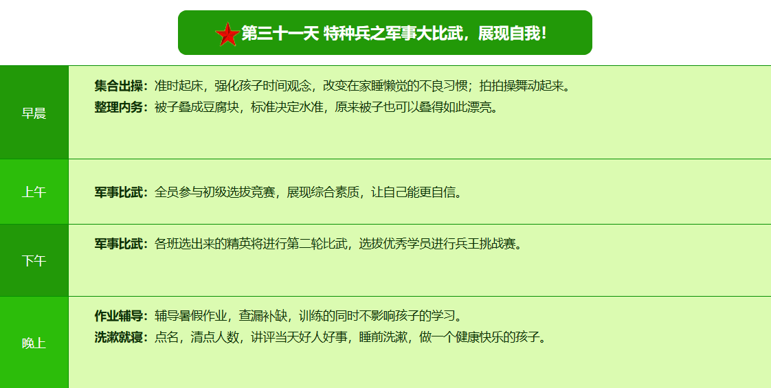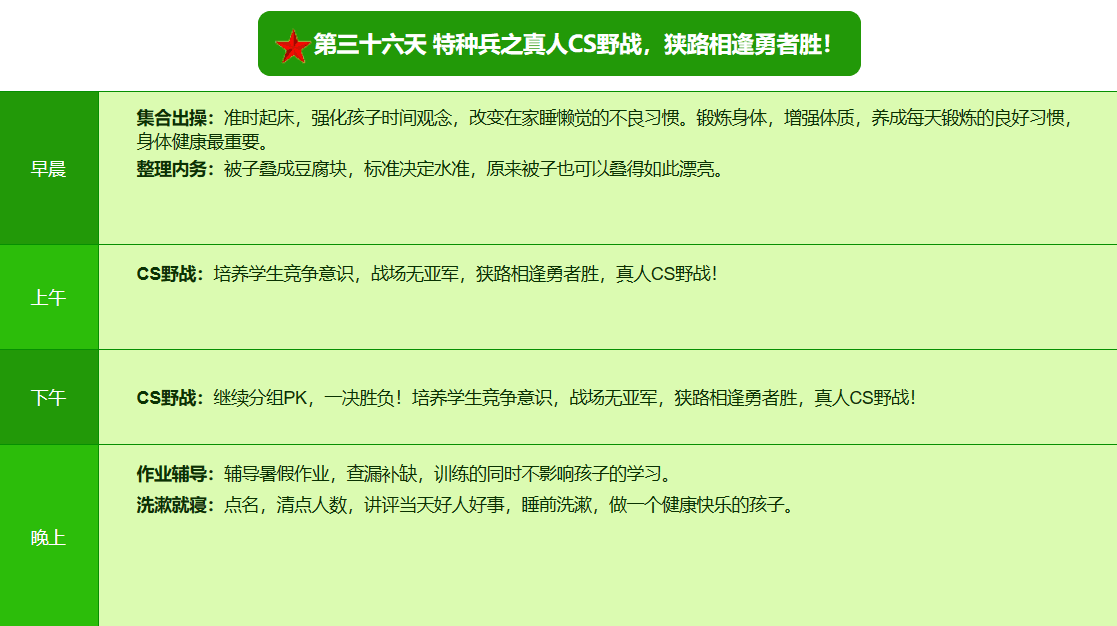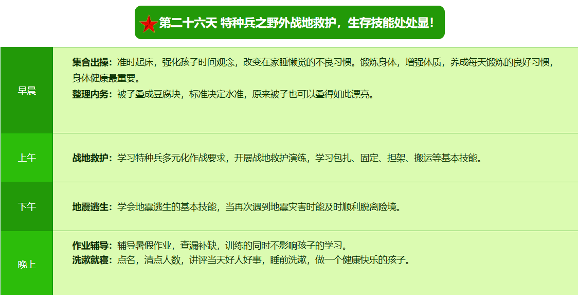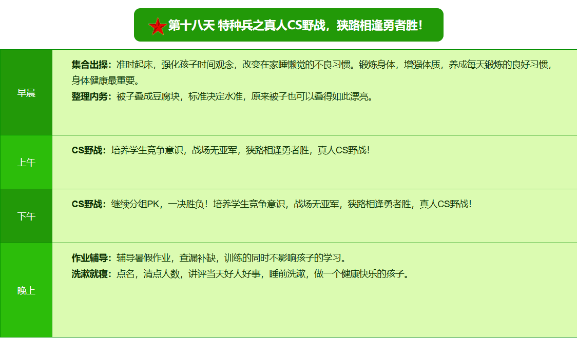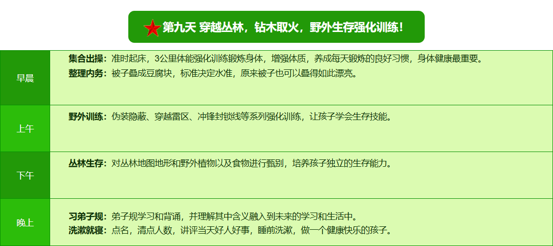 2026昆明·亮剑军事夏令营42日领袖营课程表